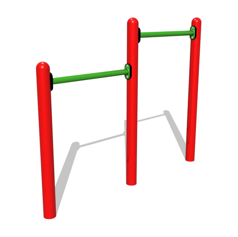 Outdoor playground steel climbing agility chin up bars. Commercial specification playground units with a high endurance, easy maintenance anti vandal design. Features BS EN13438 2013 powder coated tubular steelwork with EN ISO 1461 and ISO 9001 certification. AP0221 1730L x 90W x 1890H.