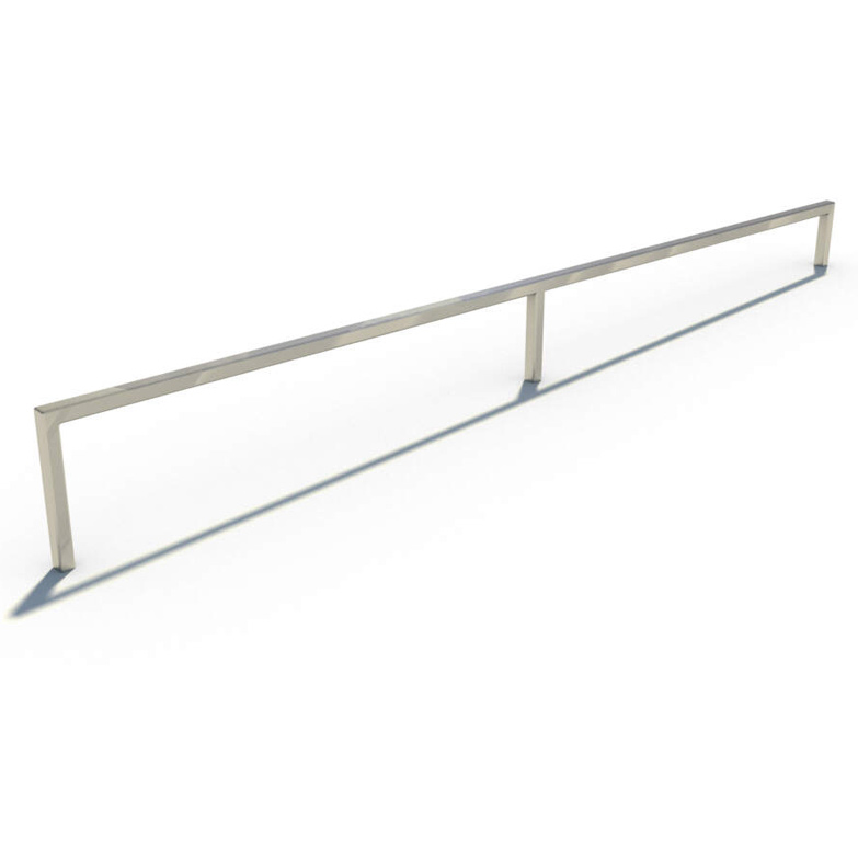 Outdoor skateboard park inclined grind rail. Commercial specification galvanised box steel powder coated frame. EN ISO 1461 and ISO 9001 certified, Meets BS EN 16630:2015. Suitable for use with skateboards, roller skates and BMX bicycle use. SRR041 4000L x 400H.
