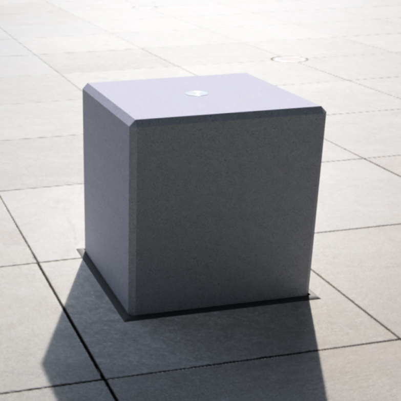 Cast concrete cube seat access square bollard.